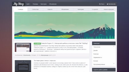 Популярный авторской шаблон для DLE 12.1 MyBlog. Стиль шаблона FLAT - Плоский дизайн что достаточно интересно.
